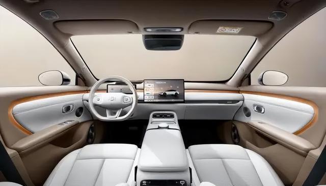 座舱采用了大面积米白色高档真皮材质的铺陈,中控台和门板四周还加入了黑色高级皮革交替混搭,还有亮黑色钢琴烤漆装饰面板,造型别致的空调出风口,操控岛区域还有实木装饰面板、手机无线充电和大尺寸旋钮,门板银质的门把手也十分精致。科技感方面,该车配备了15.4英寸中控屏+10.25英寸仪表+25.6英寸AR-HUD构建信息瀑布流,带来了最直观的视觉冲击力。接入DeepSeek大模型的Flyme Auto系统,400ms唤醒速度配合93%识别率,连"打开天窗至35%开度"的复杂指令都能精准执行。