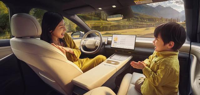 外观方面,整体造型修长圆润,前脸采用贯穿式星环LED灯组+可发光品牌LOGO,搭配上方两条灯带,形似微笑;车顶集成激光雷达,科技感与辨识度兼具,并配有辅助驾驶指示的小蓝灯。侧面采用溜背式轿跑造型+可机械开启的半隐藏式门把手,安全且实用;无边框车门+无边框后视镜+隐藏式水切,彰显高级质感。尾部同样以贯穿式尾灯+发光LOGO收尾,与前脸形成呼应,强化整体视觉统一性。